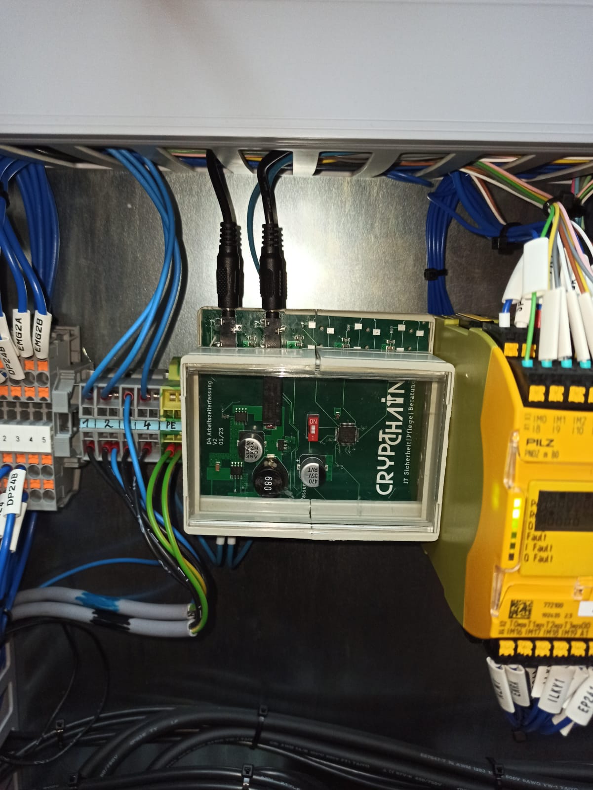 Diese Platine ermöglicht mithilfe einfacher Stromzangen die Leistungsaufnahme zu messen und dadurch eine externe MDE / BDE Schnittstelle (Potentialfreie Ansteuerung) zu schalten.